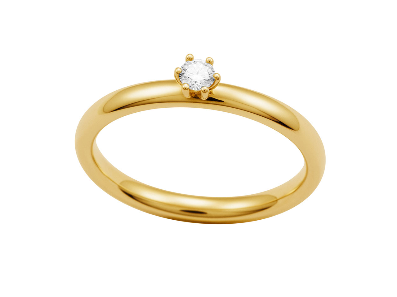 Der Solitaire zeichnet sich aus durch einen ausgewählten Diamanten als zentrales Thema. Der Ring kann einzeln, aber auch zum Ehering dazu getragen werden. Hierbei ist es wichtig, dass die Steinfassung am Ehering reibungslos entlang laufen kann.